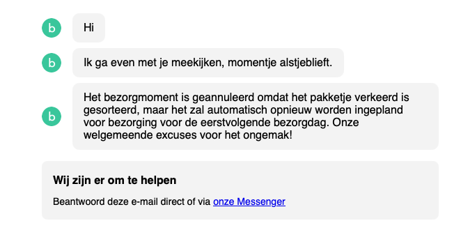 Totdat de statusmeldingen per e-mail binnenkwamen en het tijd werd voor contact met de helpdesk.